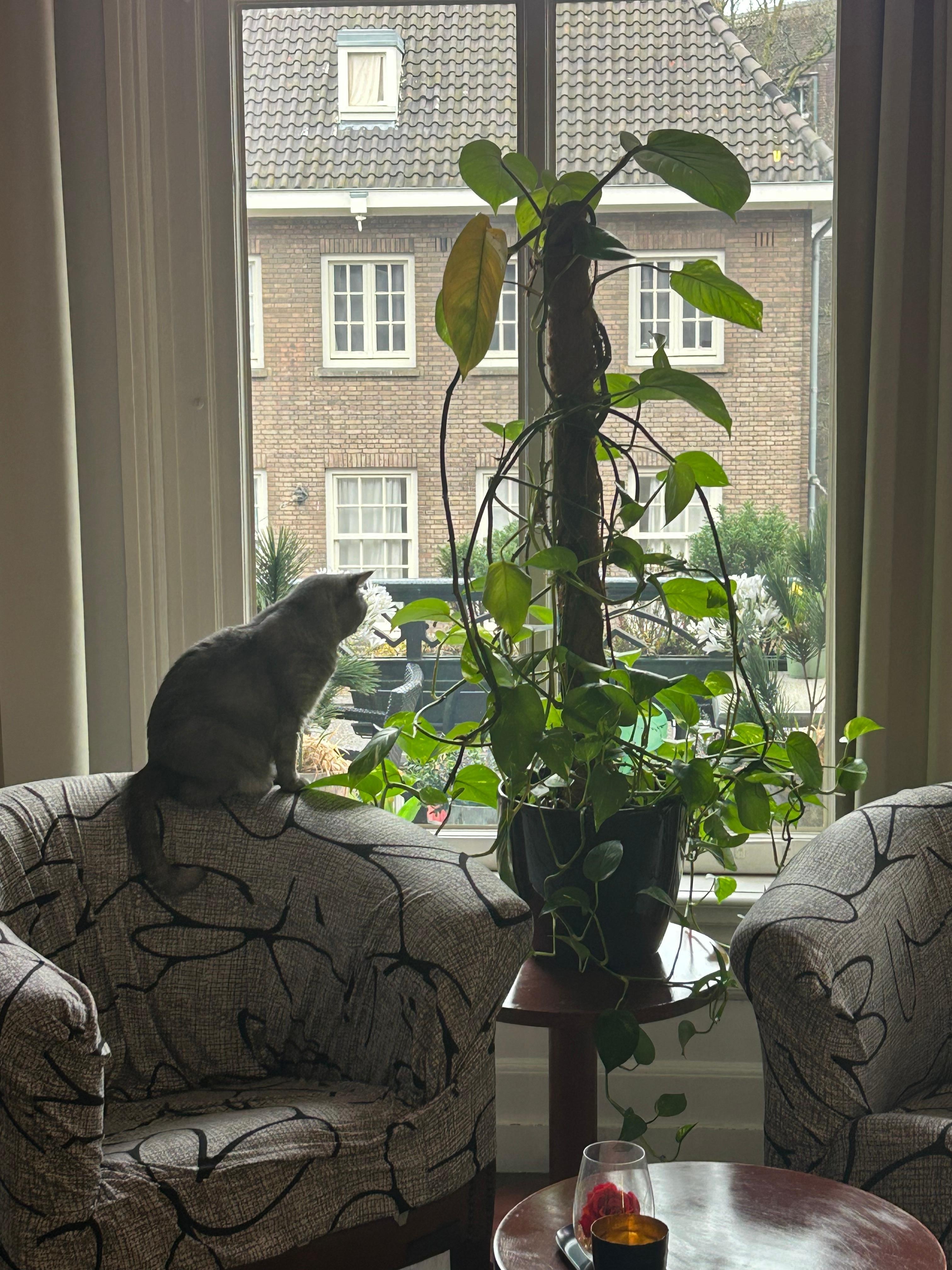樓梯很陡,可是會有親切的旅館人員幫忙提行李上下樓,還有可愛的貓。房間很乾淨,雖然有點小行李箱沒辦法在地上攤開,但整體還是好的。飯店位置離TRAM westermarkt站走路只要2分鐘,從中央車站直接搭過來也只要5-10分鐘﹐,非常方便,附近就是安妮之家和西教堂,只是我們的房間在馬路旁,晚上到12點左右都還聽得到路上的吵雜聲,但我們不是淺眠的人,床很舒服所以還是睡得很好。早餐很棒,旅館櫃檯都非常親切,check out之後可以寄放行李到很晚。