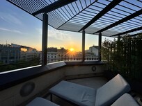 Urban elegance awaits at this Barcelona hotel where guests can relax on the rooftop terrace or beside the seasonal pool while enjoying city views