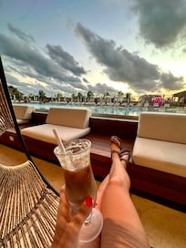 Travelers enjoy gourmet dining at 11 restaurants and play on an 18-hole golf course before relaxing with drinks at the rooftop pool or oceanfront bar