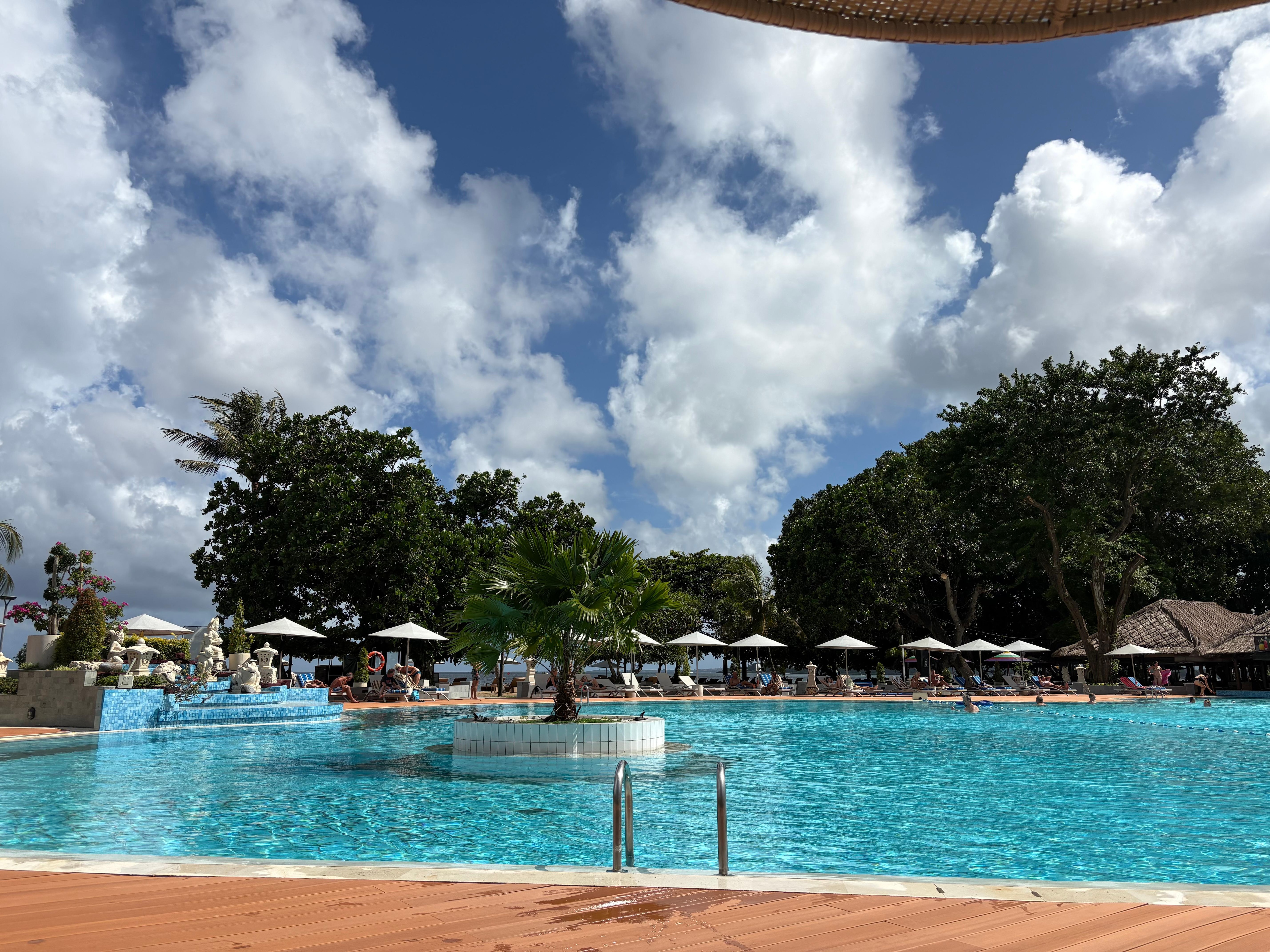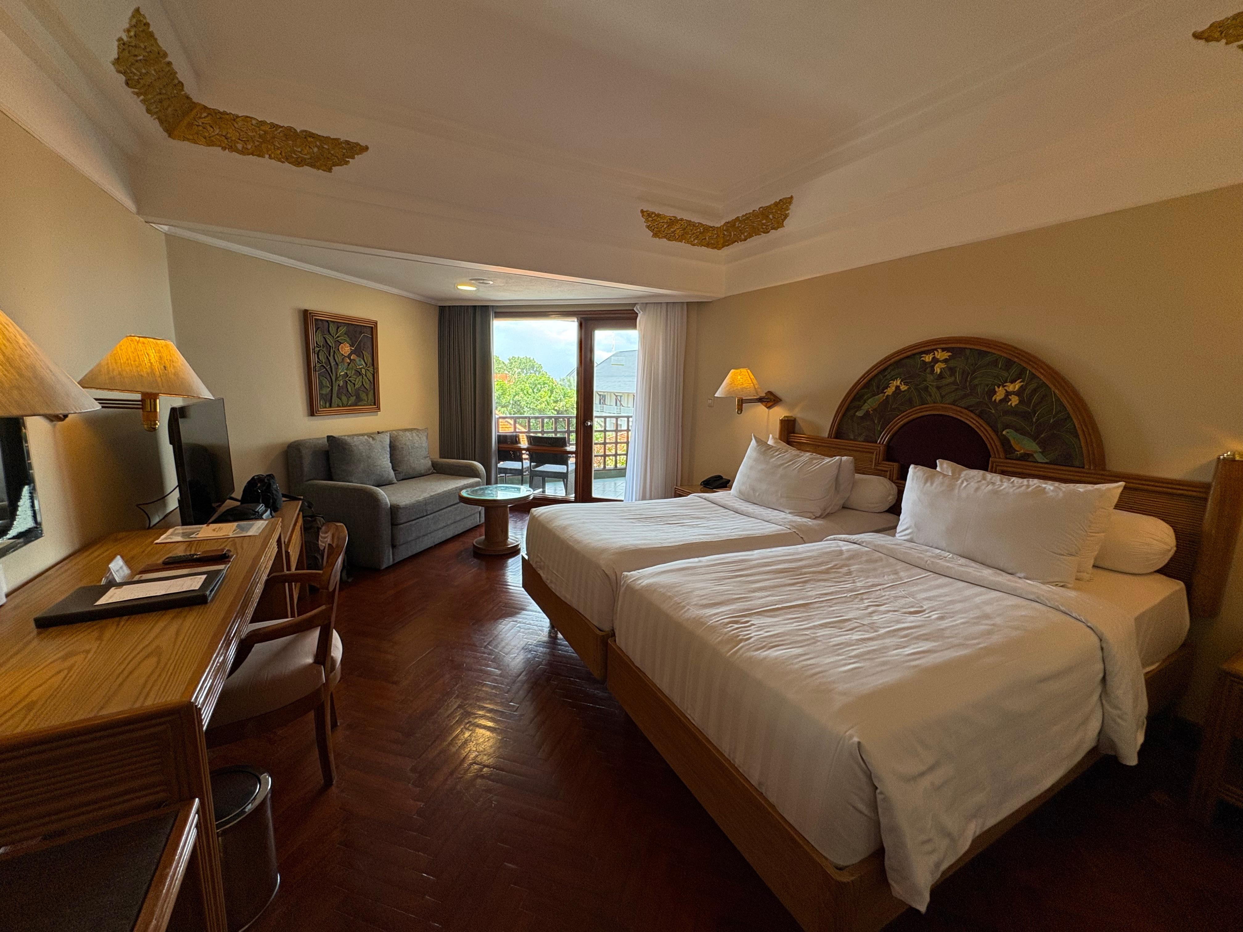 Our room was clean, comfortable and well appointed. The hotel staff was superb. The breakfast buffet was amazing in the variety of foods and tasting sensations. The location and setting along with the many restaurants and recreational choices right on the hotel property make this an excellent choice for a short or long stay in Bali.