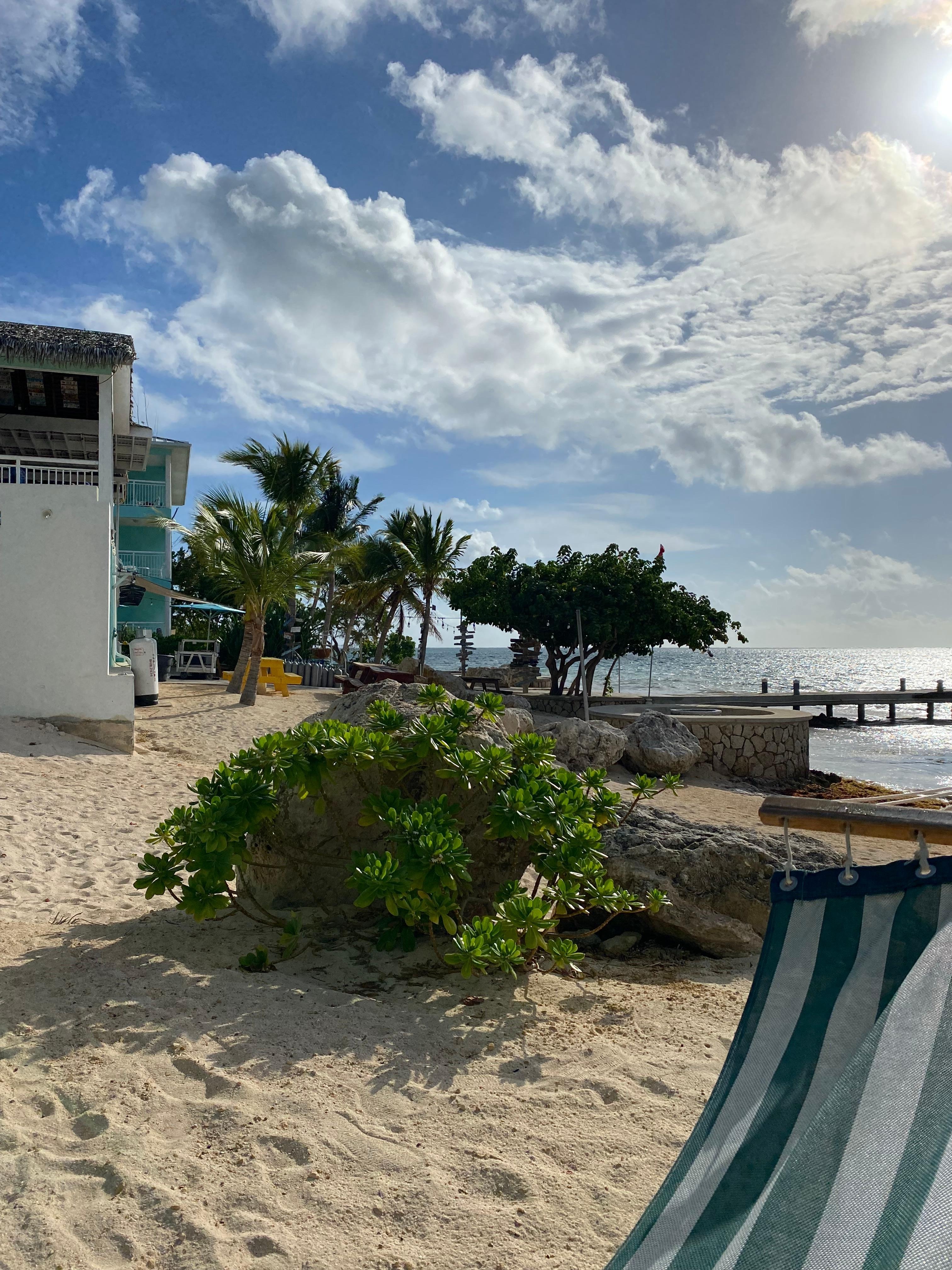 If you are looking to avoid the cruise ship crowds and a packed 7 mile beach, consider renting a car and heading over to compass point on the east side. Everything on the east side is cheaper and you can have beautiful beaches all to yourself. The complimentary breakfast each morning was a great way to start each day. The staff was ridiculously friendly. We didn’t do any diving, but we saw them prepare the boats each morning from the restaurant overlooking the dock. They get everything ready for you, you just walk on the boat, enjoy your dive and then walk off. They take care of all the set up and clean up. The pool and hot tub were very nice. The units have full kitchens and the bbq grills next to the pool were very high quality and kept super clean. The restaurant at the facility was very good, with a lot of variety and reasonably priced. There is also an awesome Mexican restaurant 100 yards down the road. If you want a variety of shops and restaurants all within walking distance, this probably isn’t the place for you. I would highly recommend renting a car, and driving over to rum point or even over to the west end so you can experience everything the island has to offer.