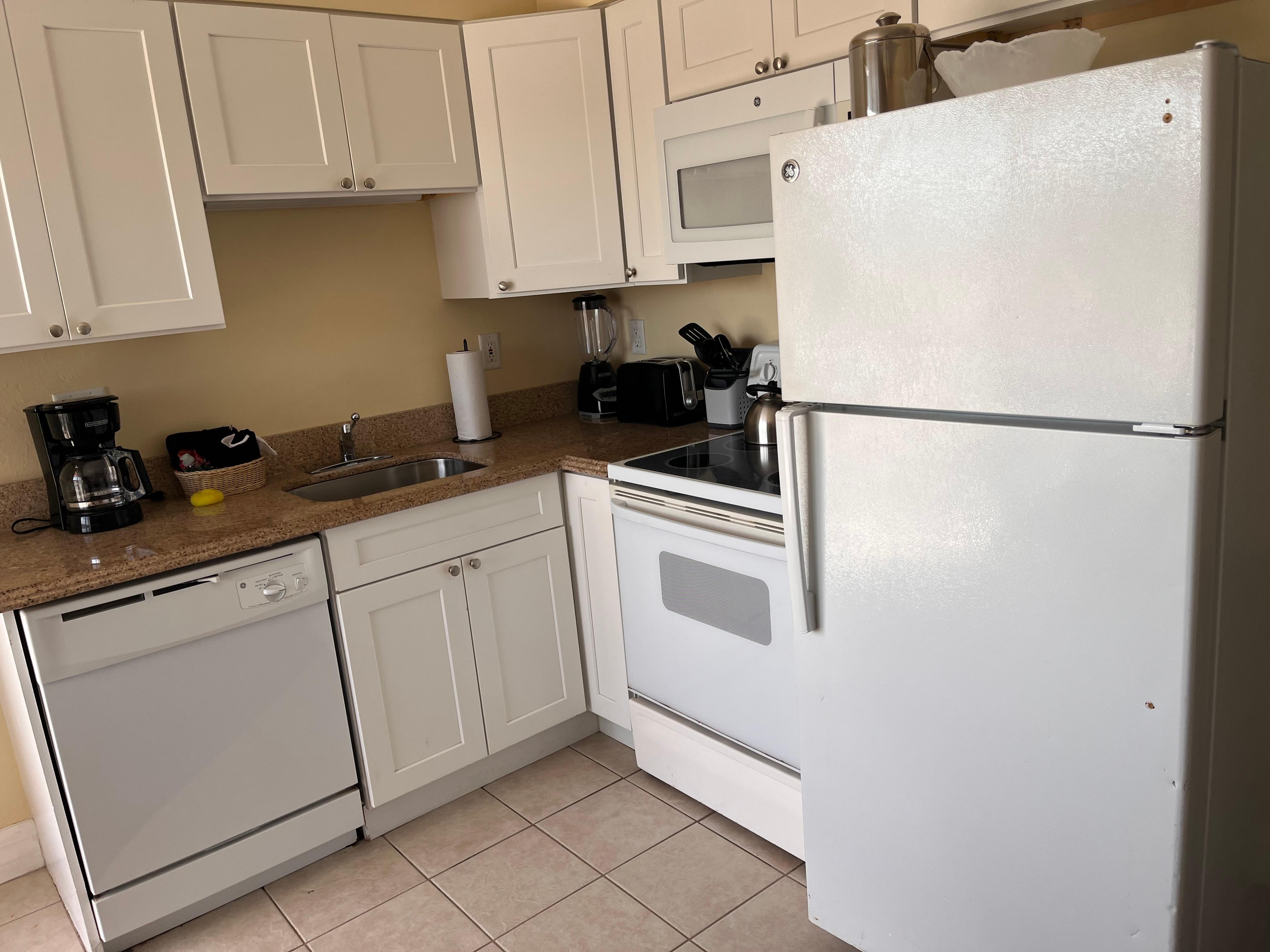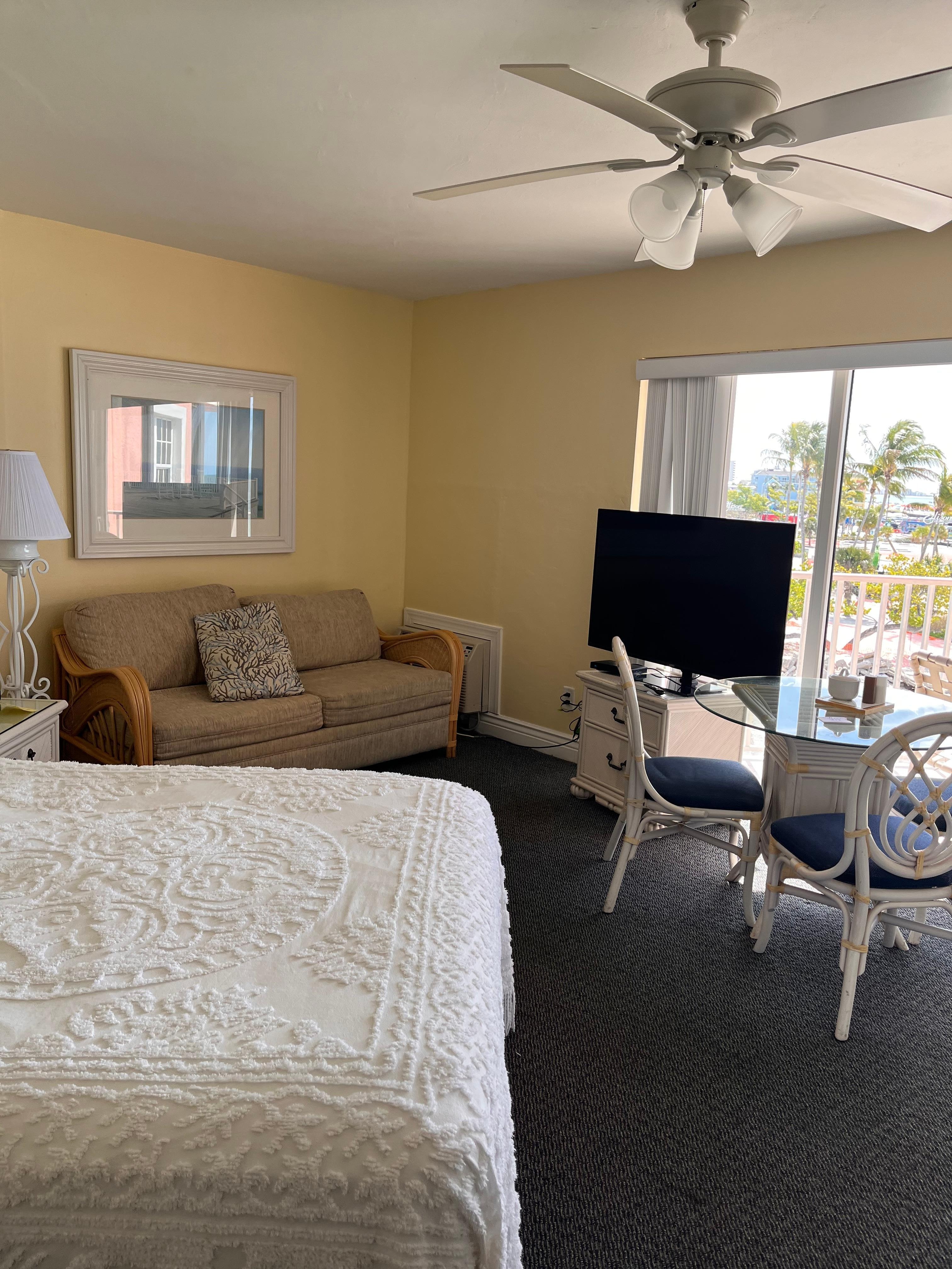 Receptionist Annie was the best! Large pretty room with view of the beautiful white sand beach. We didn't need the kitchenette but it would be great if you're staying longer. Easy walk to restaurants and bars via sidewalk or beach.