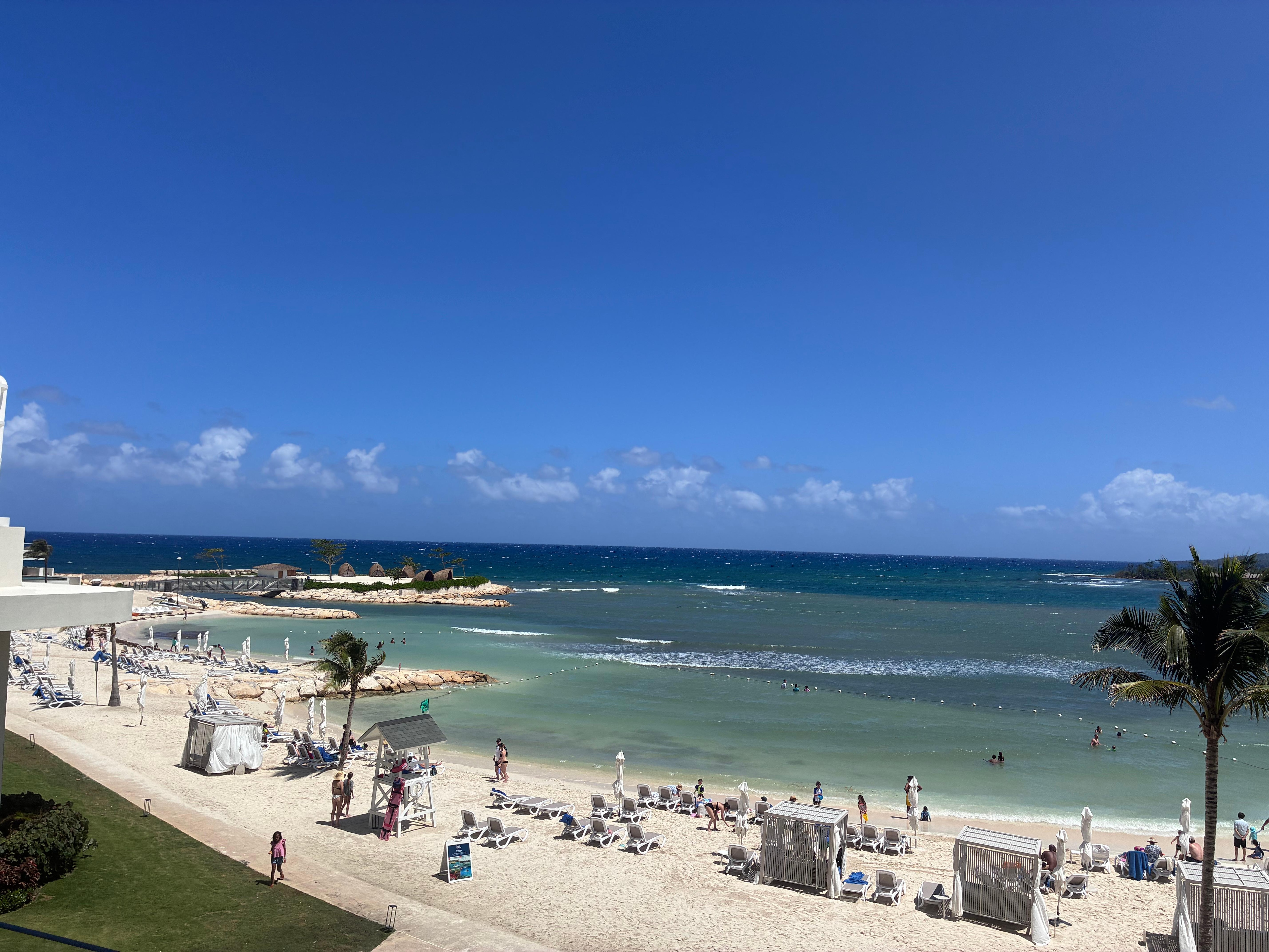 The attitude of the staff was the best I’ve experienced in Jamaica. I was disappointed however in the beach. Too much rocks in the water. Needed water shoes in order to go swimming. Good thing there were a lot of pools to choose from for swimming. Every thing else was great, clean rooms daily and snacks refreshed daily.