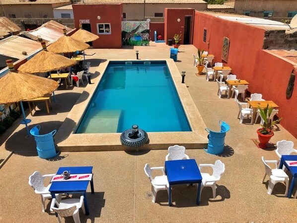 Travelers start their day with local flavors at breakfast before discovering the charm of this getaway with its outdoor pool and nearby attractions