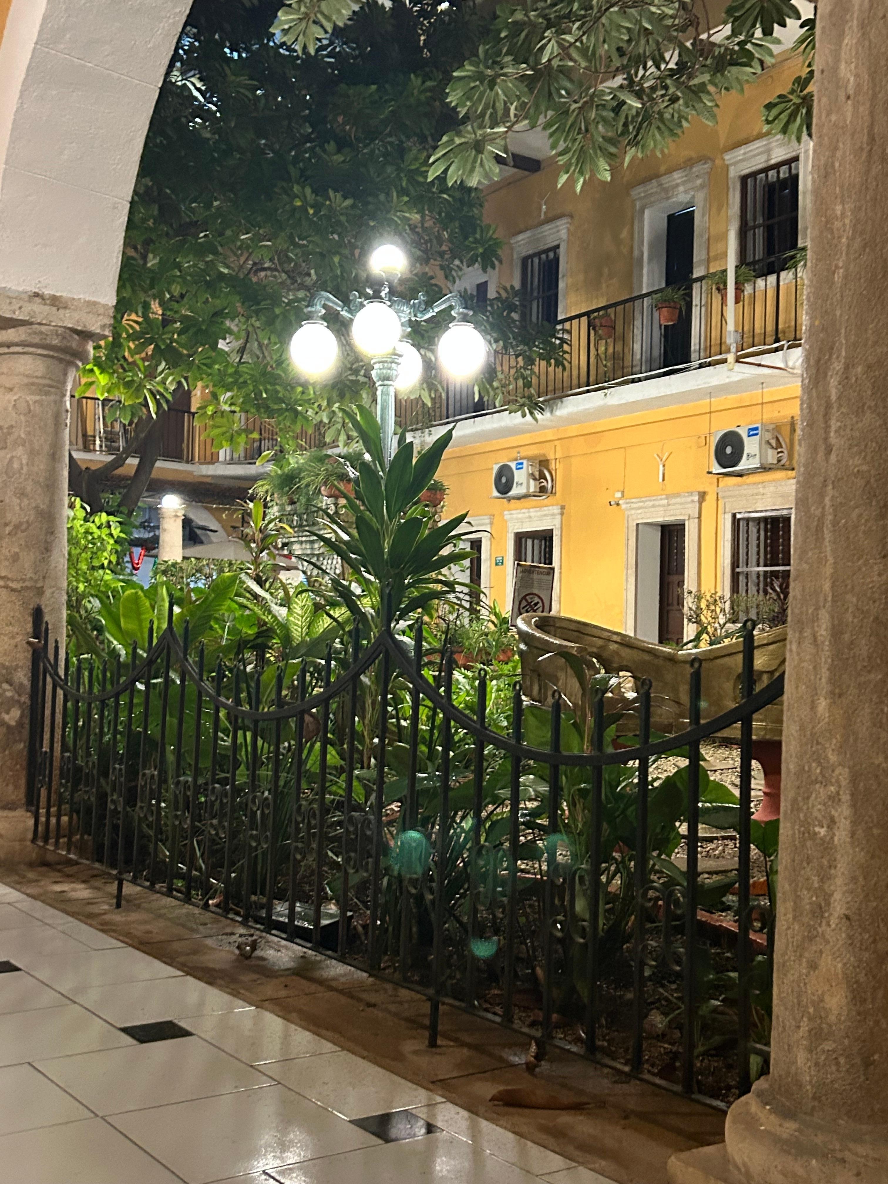 Hotel Caribe creates a peaceful retreat in Mérida Centro where travelers can relax by the outdoor pool or find quiet moments in the garden sanctuary