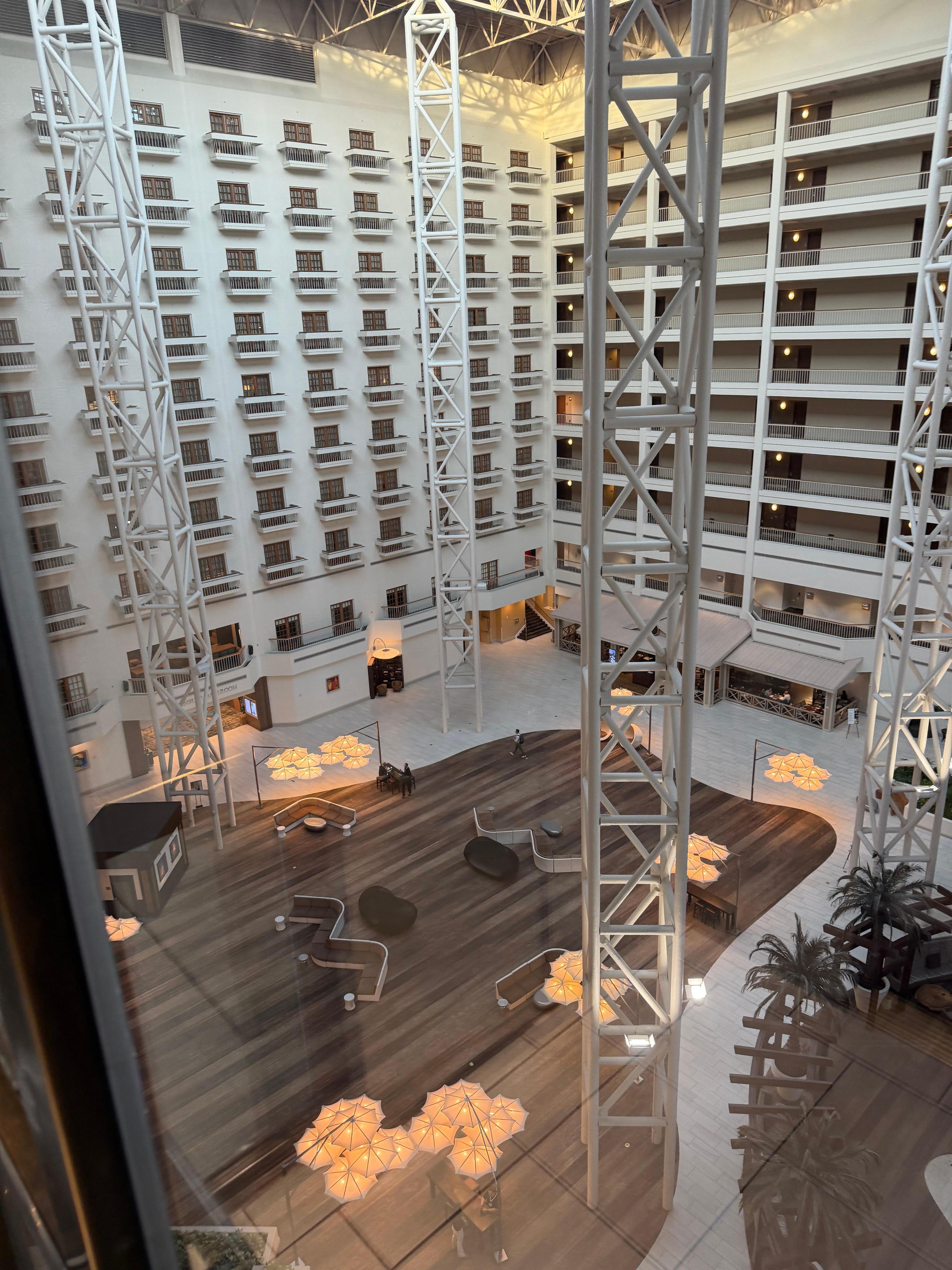 The room was clean and comfortable, with a view of Seaworld which was spectacular, especially watching nightly fireworks displays. Starbucks inside the hotel was super convenient as was the humongous TV at the inside atrium bar which was great for watching the ball games. Brandon at the front desk made check in so easy and recognized me every day when i walked by. This hotel is conveniently located next to Seaworld as well as many restaurants, shopping and other attractions. We had a great stay.