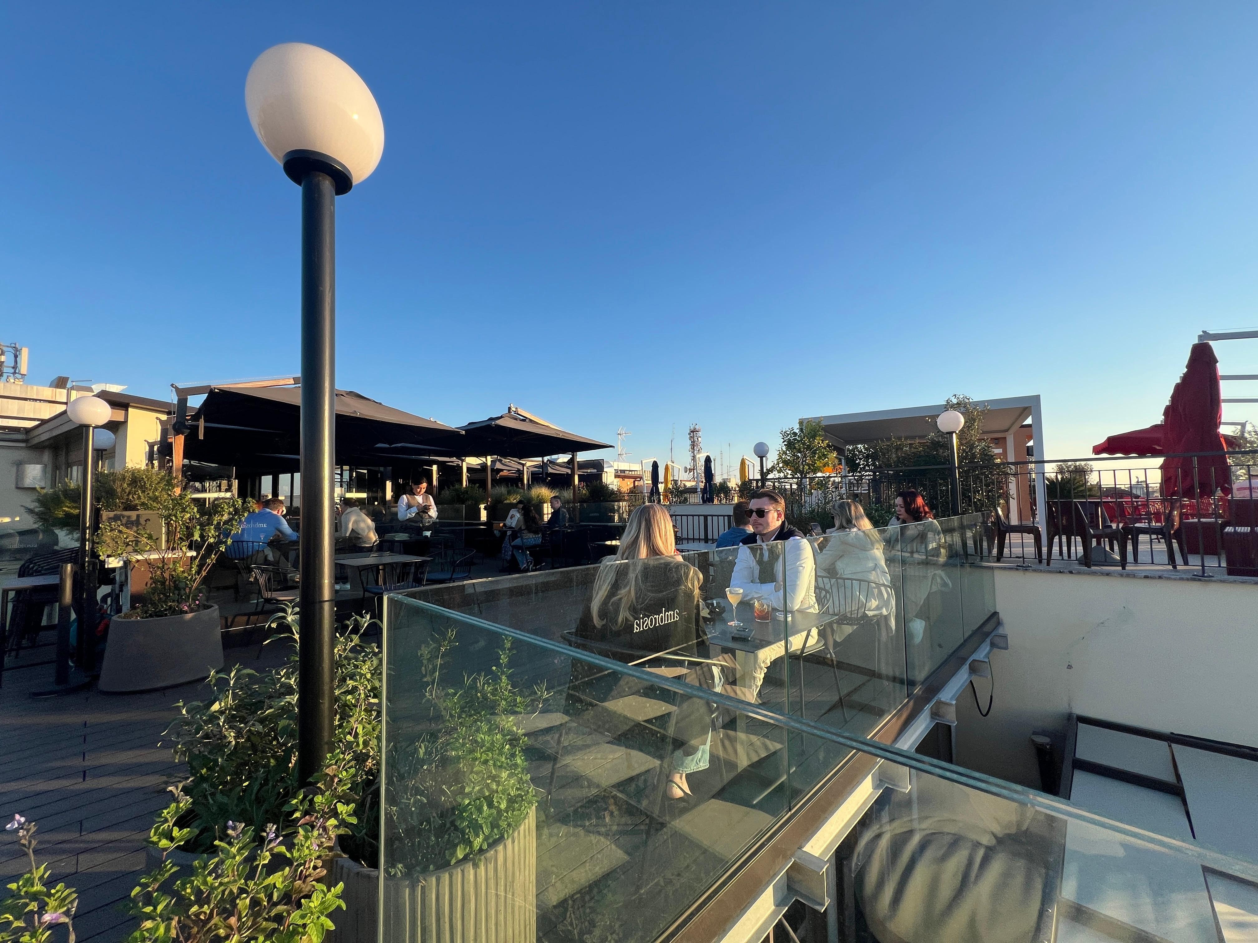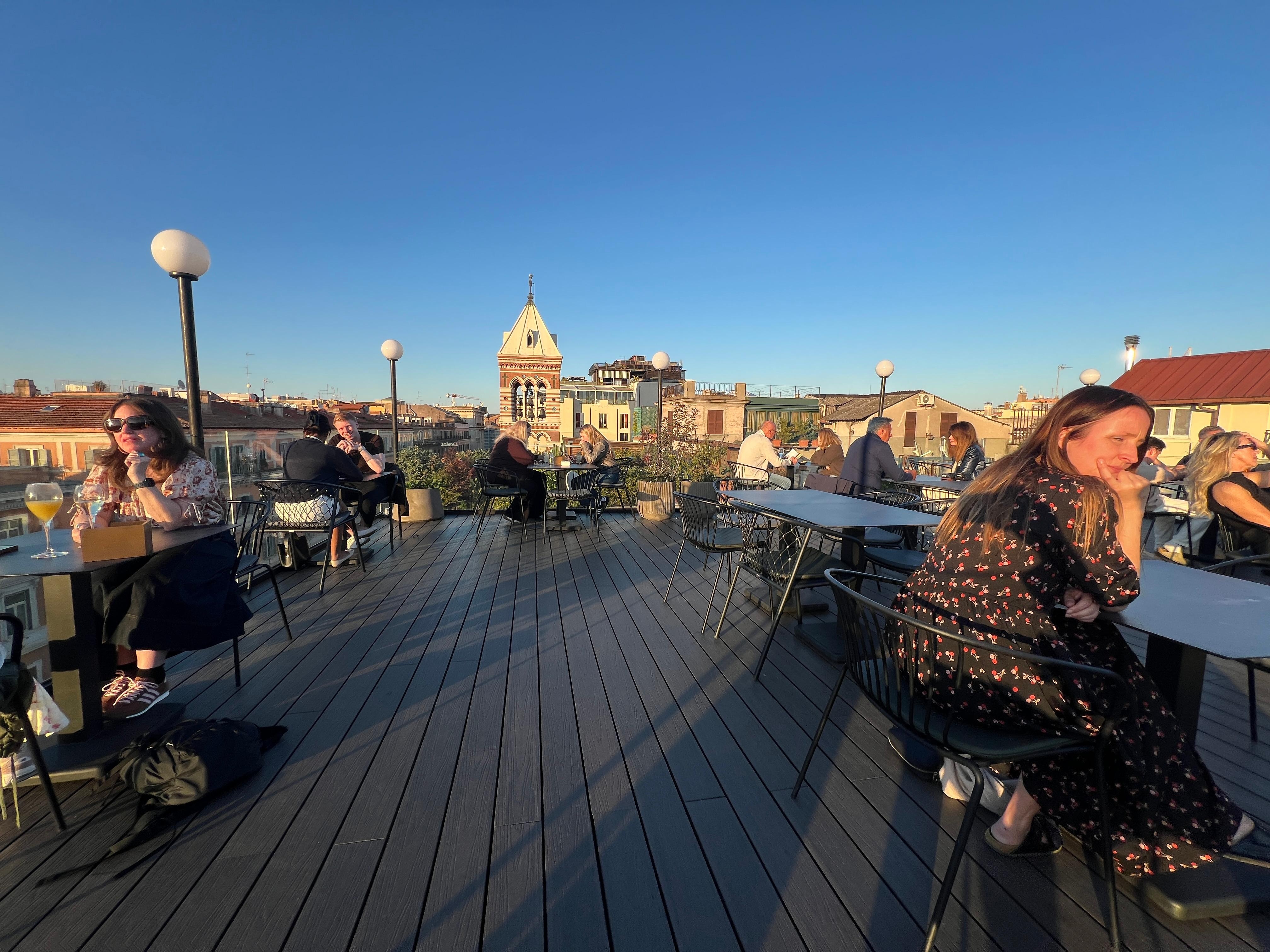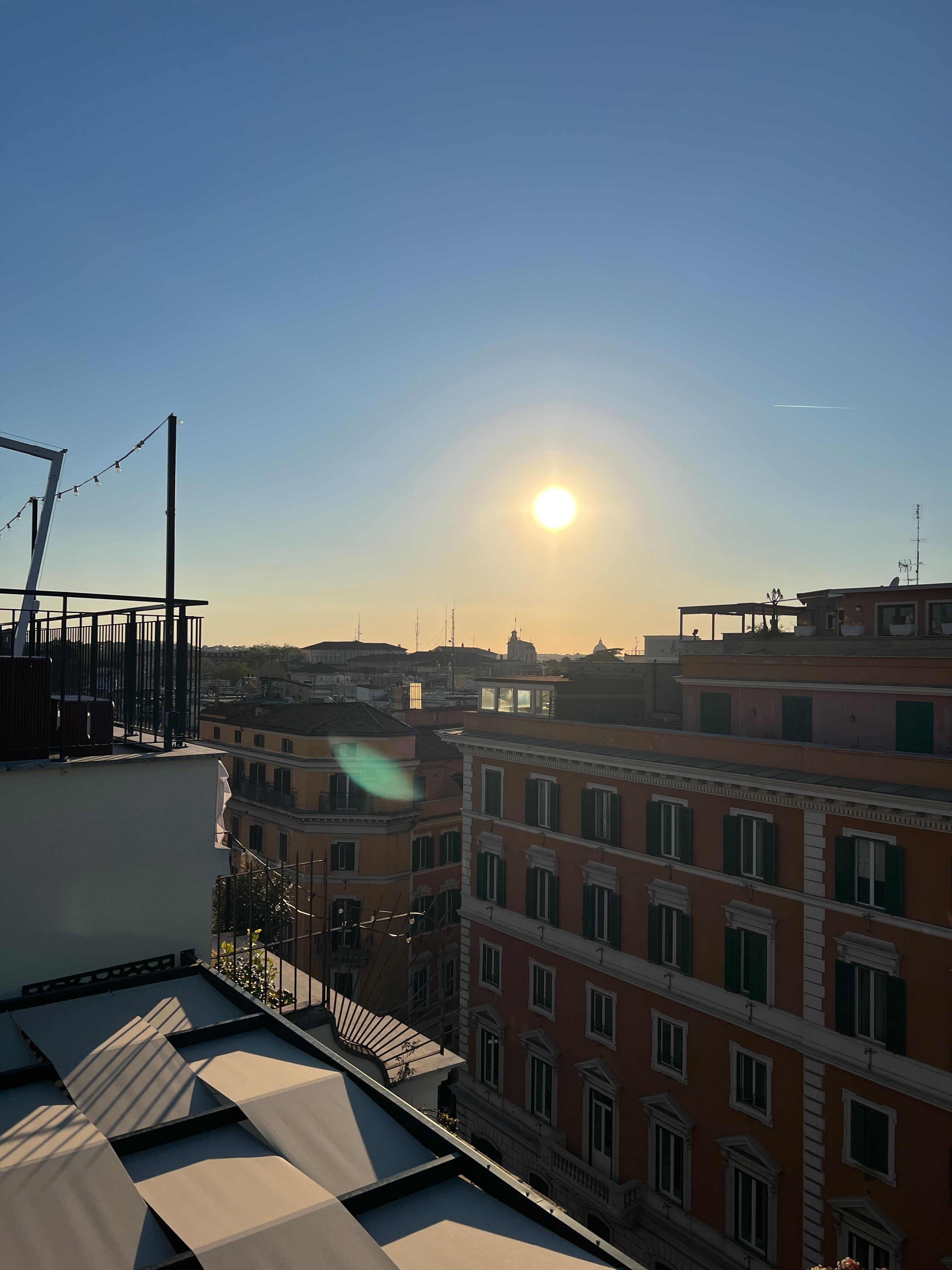 Be prepared for a small but comfortable room. We made reservations for the rooftop restaurant, food was amazing. We got an older man as a server and he was very rude. Got our order and never came back for refills or touch our table. When he did come back we asked for bread while we waited and he never brought anything. He seemed bothered because they were about to close and we kept asking for things. Other than that, lobby staff is very friendly and helpful. The hotel is very centrally located, walking distance to Trevy Fountain. It is also super close to the train station, and a bike/scooter ride away from the Coliseum. Definitely recommend!