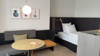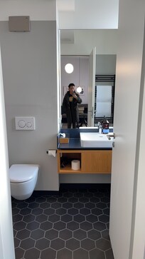 A charming little hotel tucked away just a short walk from the old town. The room presented challenges for 3 adults featuring a “full monty” glass bathroom 😅. Fortunately, the staff was helpful and accommodating to waive extra bed when we needed to find another hotel room for our son due to the bathroom issue. We had plumbing issue in the room but was quickly fixed. Self-helped laundry facility was a plus point. Despite the initial hurdles, the room was a good size, and the bed provided a comfortable night's sleep.