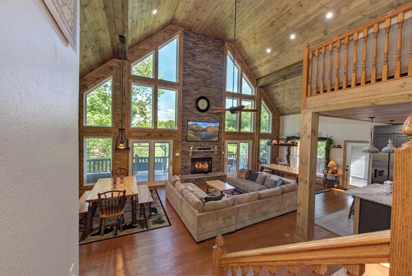 小屋, 多張床, 熱水浴缸 | 起居區 | 65-吋平面電視、數位頻道、電視、壁爐