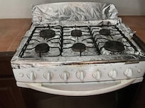 Kitchen - no drinking water. We had to buy some from the corner store. Stove was disgusting. Totally wrapped in filthy aluminum foil, except for the gas elements, which i wouldn’t trust turning on! The glass on the oven door hung down when the door was opened. No pots, pans, coffee maker, no cooking implements at all. The table dad 4 plates, 4 coffee mugs, 4 forks, 4 knives set up.