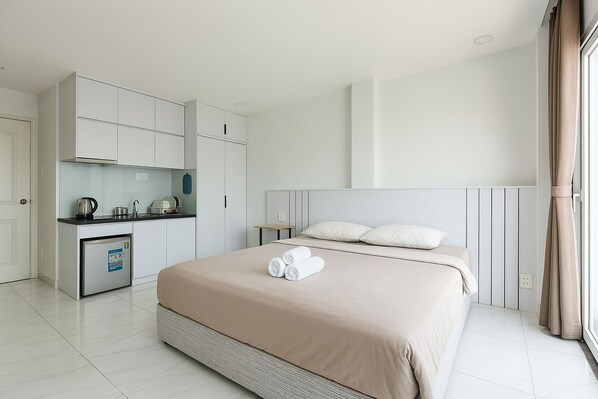 浴室設備包括浴缸或淋浴、淋浴花灑以及吹風機。這家位於胡志明市的出租公寓提供免費無線上網。客房的客房清潔服務每週一次。