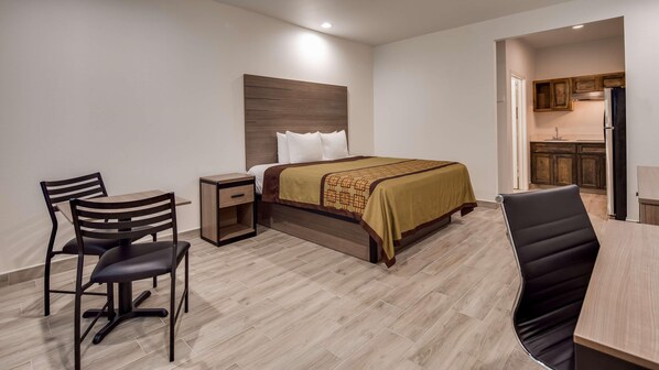 The room is pretty standard, no frills, but very clean and the kitchenette was nice. It'd be better if there was a even 1 pan or utensil in the room. Overall, it was a pleasant and very affordable stay.