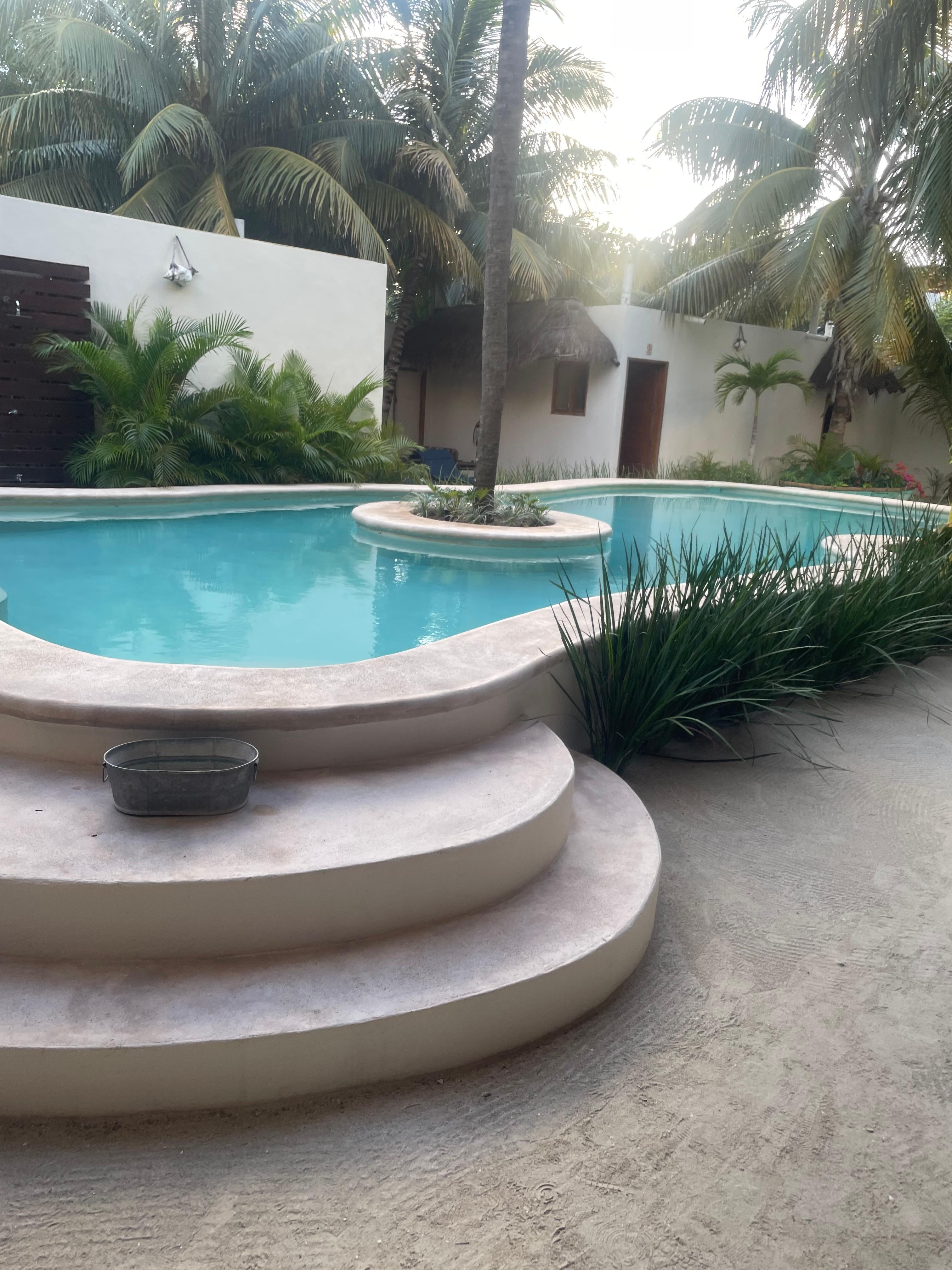 Tierra Mia is located just outside the “downtown” Holbox scene but still just a short walk to access all the restaurants and stores. It’s an even shorter walk to the beach. Very nice facilities. We particularly enjoyed the pool area which offers some nice shaded areas in the heat of the day. The manager is very helpful and nice. The included breakfasts are very good - I recommend the chilaquiles. There is also drinking water available in the lobby. It would be nice to have fridges in the rooms or if the hotel sold some drinks to enjoy by the pool, but overall we had a wonderful stay here.