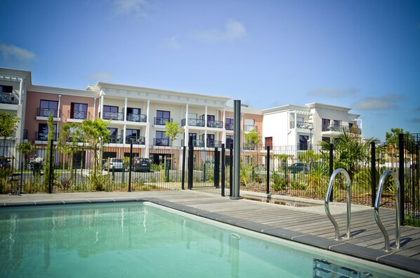 Recreational amenities at the aparthotel include a seasonal outdoor pool.