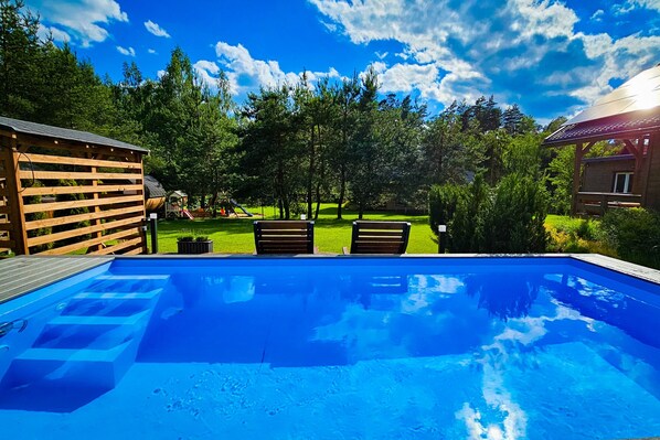 親子山區木屋,有室外游泳池 (季節性)和浴缸