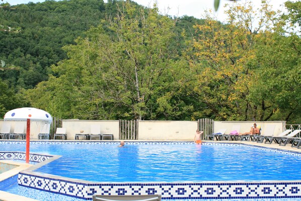 多爾多尼河畔蒙索的營地,有咖啡廳和室內游泳池