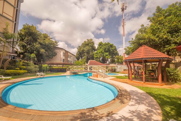 Travelers find a peaceful retreat near Nairobi National Museum, where they can swim in the outdoor pool after a workout and explore nearby attractions