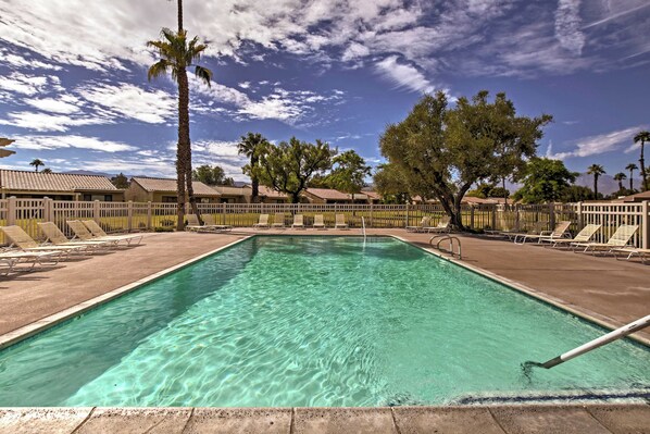 Pool Access & On-site Golf: Palm Desert Retreat! provides a firepit and more. Guests can connect to free WiFi in public areas.