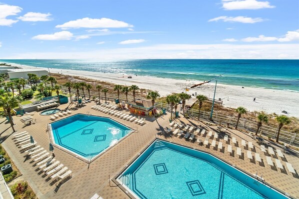 Beachfront condo with an outdoor pool, steps from Thomas Drive