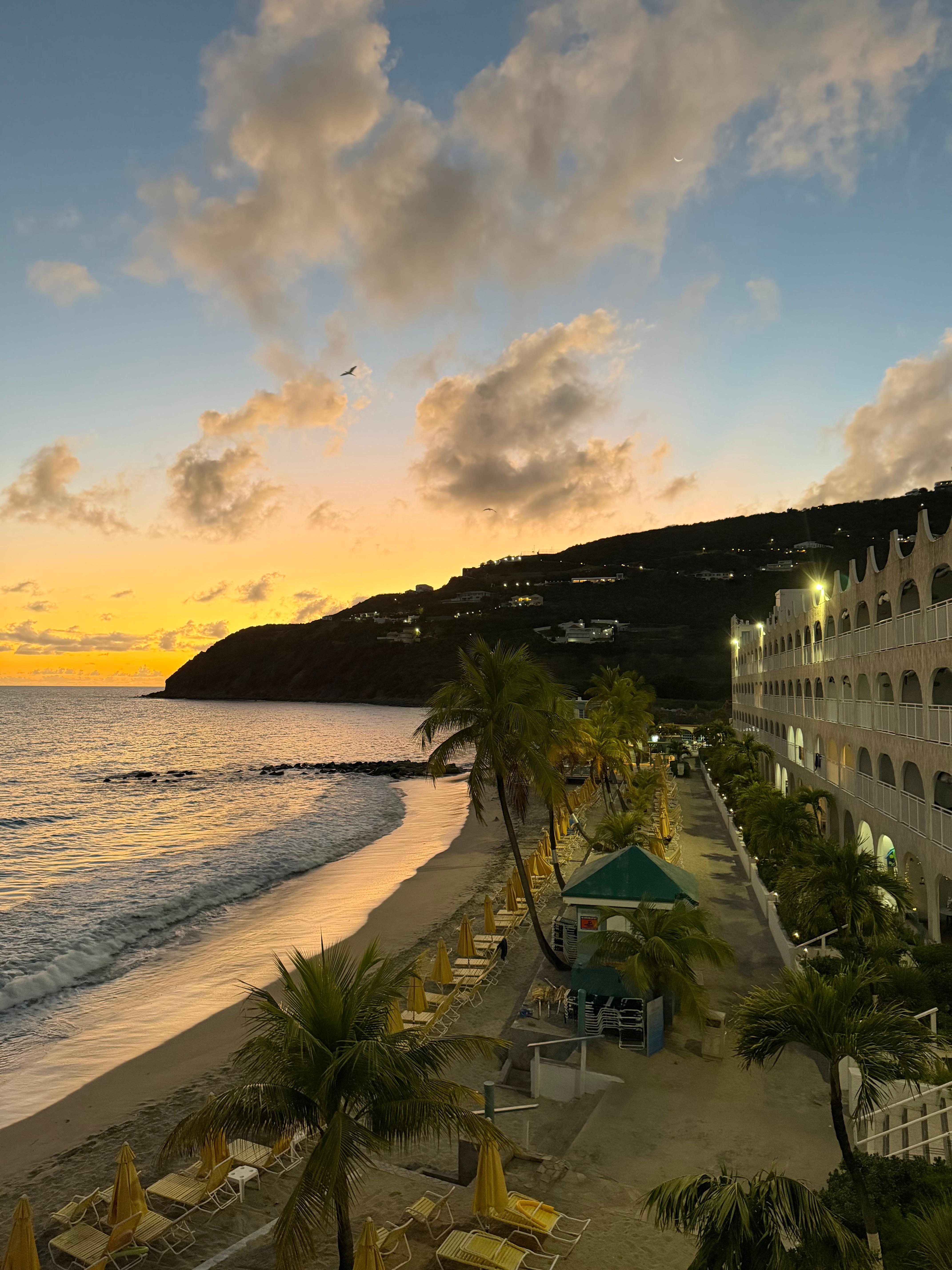 Great beach, clean beach, Great view! Spacious condo with AC and good flowing water. Restaurant on site that serves all meals consistently. Very close to shopping in Phillsburg and the Bobby Marina for trips.
