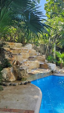 Travelers find a peaceful retreat where they can soak up sunshine by the pool while planning their next adventure near the crystal-clear waters of the Mexican coast