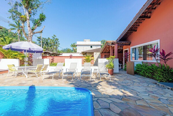 On beach with outdoor pool for sandy fun near Boiçucanga Beach