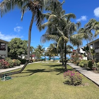 The property was lovely the garden was well maintained. The room was comfortable and clean. We had a beach view which was lovely , the downside was it was very hot due to the sun hitting on the glass door all day causing the living room to be hot . The bedroom had AC and it was comfortable . I spent most of my time in the bedroom to stay cool, there is a small shop and laundry on the property so that was good .