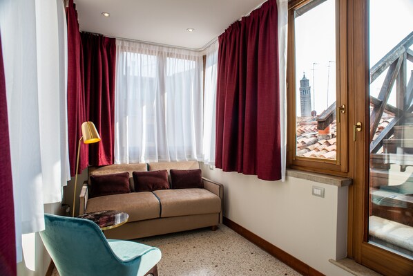 All guestrooms at Palazzina Fortuny feature comforts such as premium bedding and air conditioning, as well as amenities like free WiFi and safes.