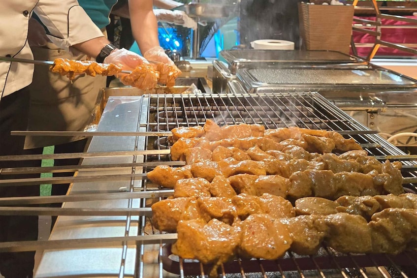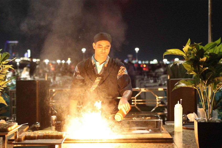 在遊艇泳池旁的現場烹飪台品嚐不同的小吃和食物。進入主用餐區,享用種類繁多的當地和國際風味美食。最後,返回您的遊輪結束的出發點。