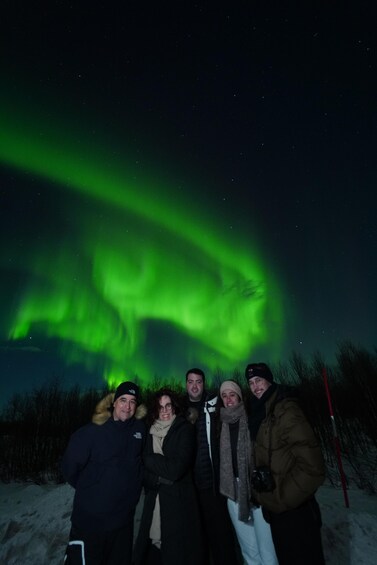 Experience the magic of the Northern Lights on an unforgettable nighttime tour to Abisko National Park. Join our experienced guides as you search for the aurora borealis, walk through the Arctic wilderness, and learn how to capture stunning aurora photos with your camera or phone. Enjoy warm lingonberry juice and delicious Swedish snacks as you gaze up at the sparkling night sky and wait for the northern lights to dance above you. Your adventure finishes with a comfortable bus ride back to your hotel in Kiruna.