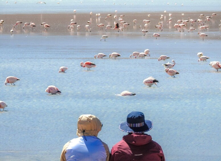 最後,白天進入“愛德華多阿瓦羅阿國家保護區”、西洛里沙漠、岩樹和巨大的紅潟湖,在自然棲息地觀賞更多粉紅色火烈鳥。