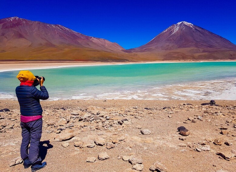 - 參觀 Sol de Mañana 間歇泉和綠色潟湖等亮點