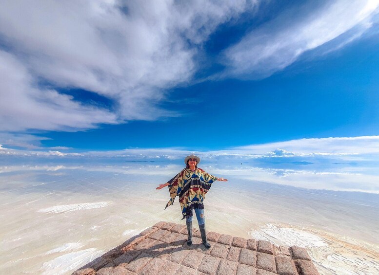 上午 10:30 從 Perla de Bolivia 的辦公室出發,開始您的旅程,離開烏尤尼鎮。參觀:火車墓地、科爾查尼 (Colchani) 的小型定居點(鹽灘旁邊的鹽礦工作坊)、鹽製成的手工藝品以及用美洲駝和羊駝纖維製成的紡織藝術品。
