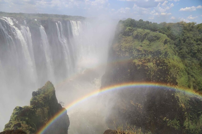 與導遊一起前往風景優美的觀景台,了解有關維多利亞瀑布的其他有趣事實。感受從上方河流流下的水流的力量,並了解為什麼當地人將這個瀑布稱為雷鳴般的煙霧。